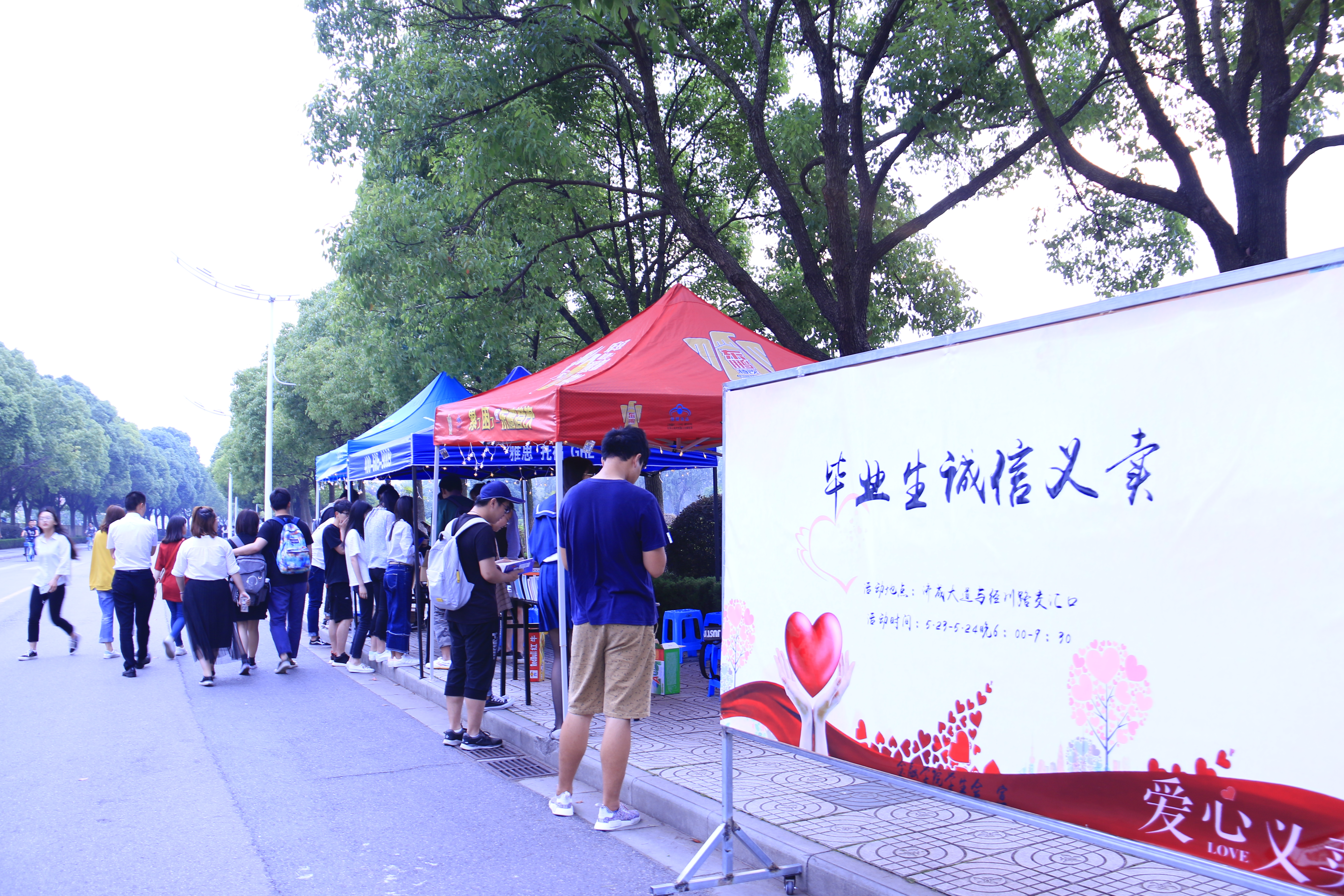 为了加强国家助学贷款及其他资助政策的宣传,普及征信和金融知识,倡导契约精神,促使学生树立诚信观念,5月23-24日18时-21时30分,“温情满校园,爱心不毕业”南京财经大学至尊全讯5550502018年毕业生诚信义卖主题活动在仙林校区济成大道与经川路交汇口处成功举办。