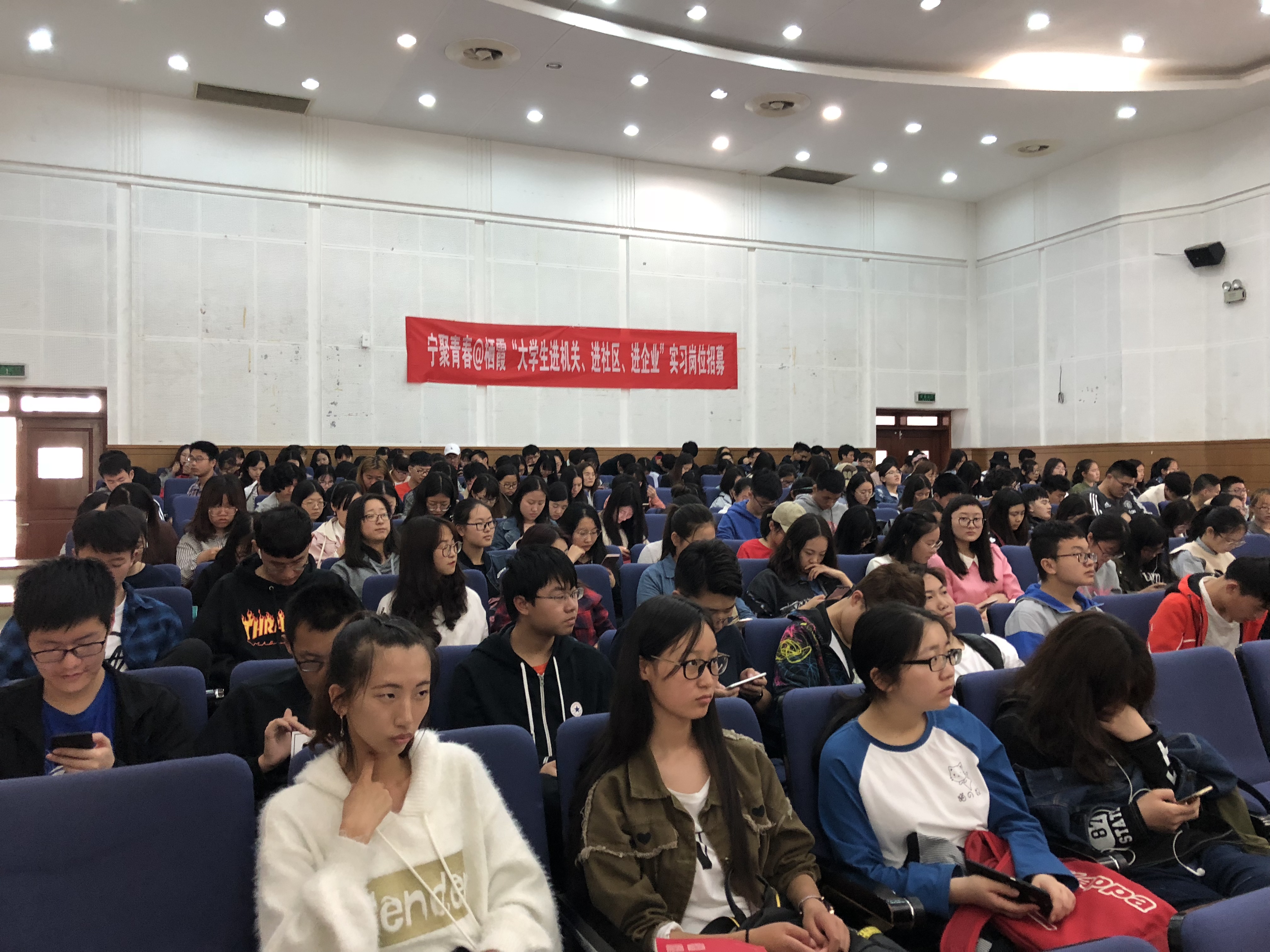 2018年4月2日上午10时,由共青团栖霞区委员会主办至尊全讯555050分团委承办的“宁聚青春”大学生感知南京行动计划讲座于德济楼报告厅举行,南京市栖霞区团委的葛若凡老师作为本次讲座的主讲老师,为大家带来了别开生面的一堂未来就业课。