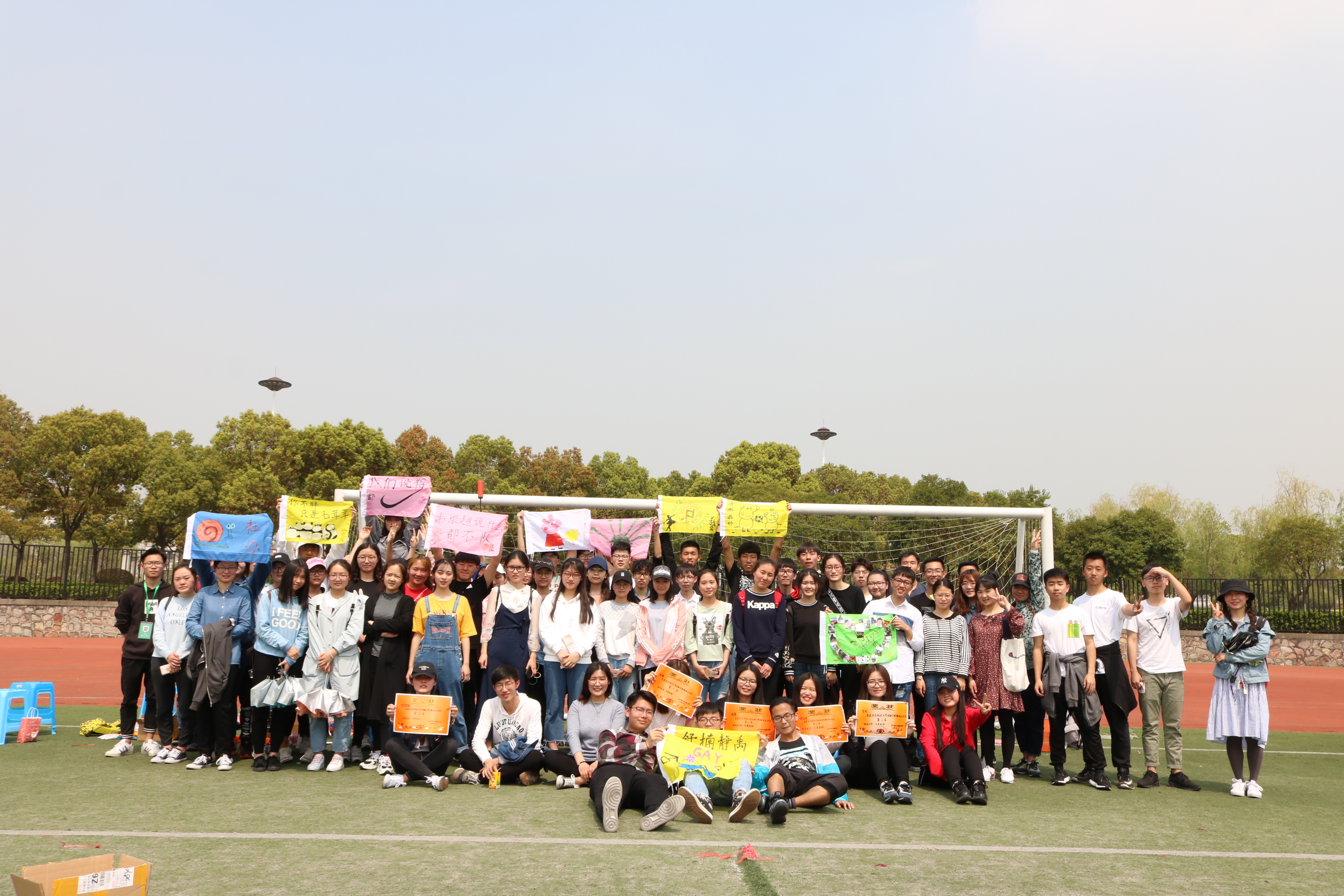 “帽子戏法”要求每队派出一男一女,将顶端剪有一个洞的生日帽戴在脸上,通过孔看外面,寻找指定颜色糖果与踢球射门。名为团结的精神让所有人自发地围在场地边,为转圈的同学撑起一道坚实的围墙。“同舟共济”项目讲究灵活与配合,每轮每队派出5人,四个部门为一轮进行比赛。第一个人手中持四张泡沫垫,依次扔出一张踩着一张,始终保持有脚或者手接触泡沫板。最后一项是“踩气球”比赛。八个部门同时进行,全部气球被踩爆的部门依次淘汰。这大概是全场最热闹的项目了,竞争也最为激烈。但是,从始至终我们都铭记着“友谊第一,比赛第二”的原则。