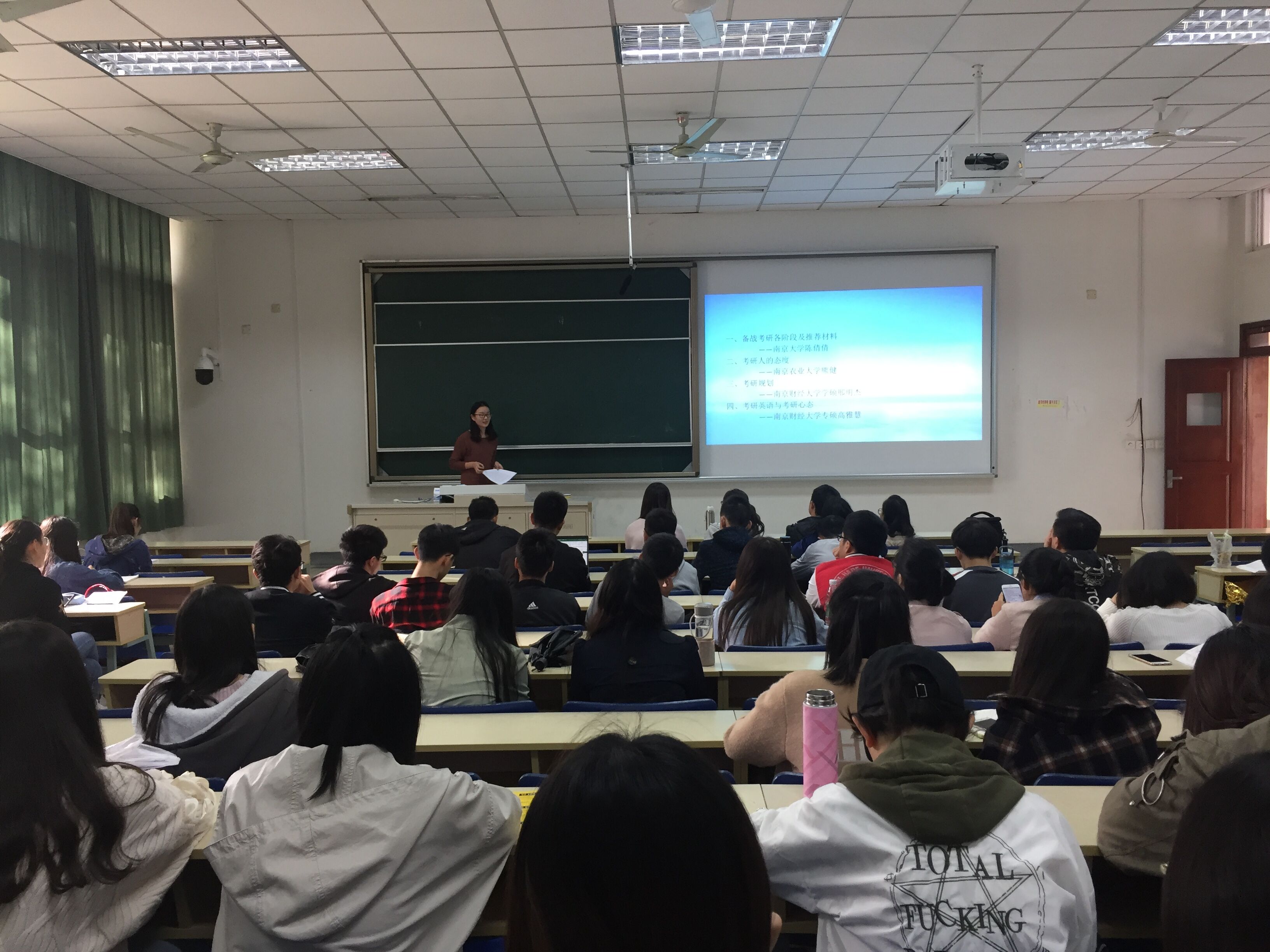 10月25下午2点,南京财经大学至尊全讯555050“校友助力·扬帆考研路”考研经验交流会在德经楼117室圆满举行。至尊全讯555050邀请四位考上研究生的校友作为主讲嘉宾,学工秘书黄炜老师、辅导员黄忠明和张雨薇老师和部分致力于考研的大三学生出席了本次考研经验交流会。