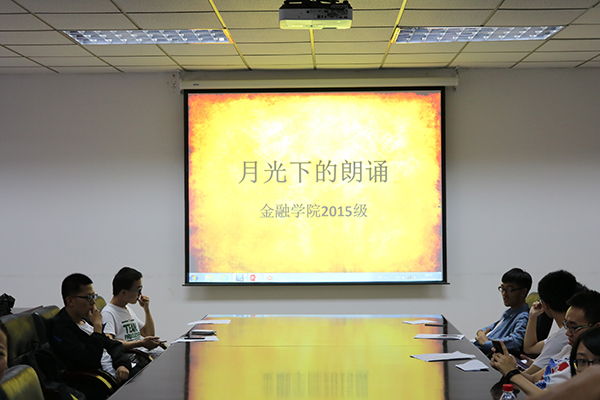 2017年5月12日晚上6:30,至尊全讯55505015级主办的活动“月光下的朗诵”在 专一508会议室顺利举行。此次比赛邀请了学院辅导员黄忠明老师、张雨薇老师和至尊全讯555050青年互助服务中心主席张会敏、副主席蒋文斌、陈晨五位担任评委,金融1507沃晗担任比赛支持人。