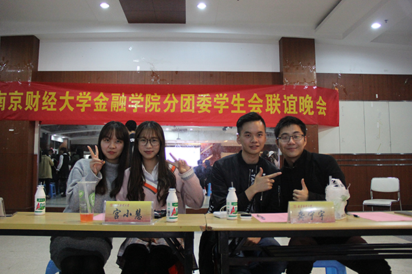 11月12日18点30分,南京财经大学至尊全讯555050分团委学生会联谊晚会在大活三楼多功能报告厅隆重举行,分团委副书记龚宁宇,学生会主席宫小慧,执行主席崔焱嘉,副主席高佳柳出席了此次晚会,整场晚会气氛活跃,高潮迭起。