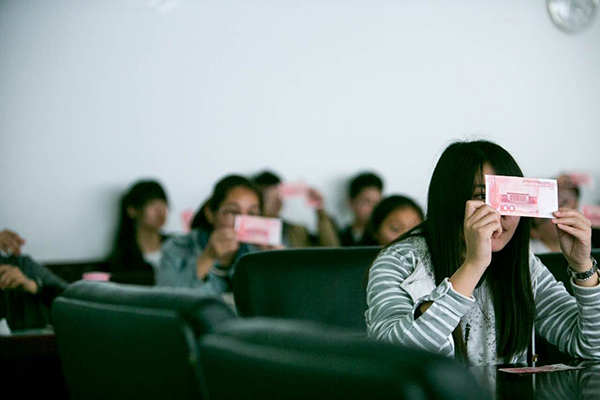会议伊始,张士青老师致辞,感谢蔡敏科长百忙之中能来到我院对学生开展诚信教育和传授银行业务知识;希望希望今后能多交流继续合作。讲座开始后蔡科长先是从新版人民币的发行给同学们说了中国目前的假币现状,并倡导大家拒绝使用假币,诚信做人,发现假币应主动联系公安机关或银行;接着,为了让同学们能够更加明确区分真假人民币,她发给每位同学一张真的新版人民币和一张假的新版人民币,并详细介绍了区分真假人民币的方法;随后,蔡科长又和我们分享了银行的一些工作情况并欢迎我们财大学子能够进入人民银行工作,同时告诫大家诚信是每个员工必须具备的基本品质。
