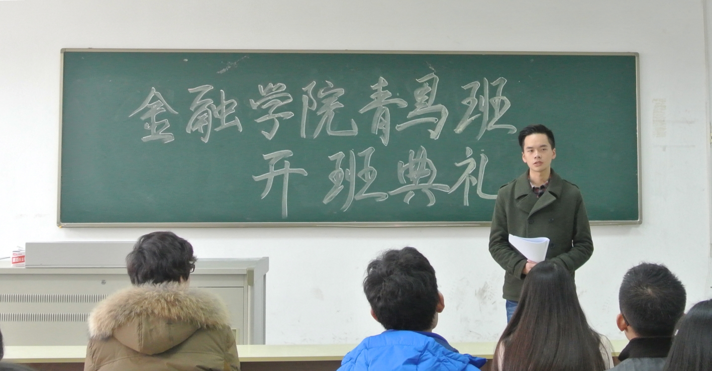 2015年12月10日十二,在经济学科楼201教师,举行至尊全讯555050青马班开班典礼。参与本次开班典礼的有金融院团委书记张士青、分团委副书记曾桀、分团委各部门委员助理以及43名通过选拔的优秀的青马班成员。