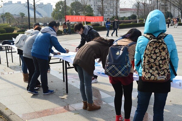 随着英语4、6级考试和期末考试的临近,我院学生会为了响应学校诚信考试的号召和鼓励同学们积极备战,于12月9日在中苑食堂广场上举办“诚信考试签名”活动。活动现场井然有序,气氛热烈。