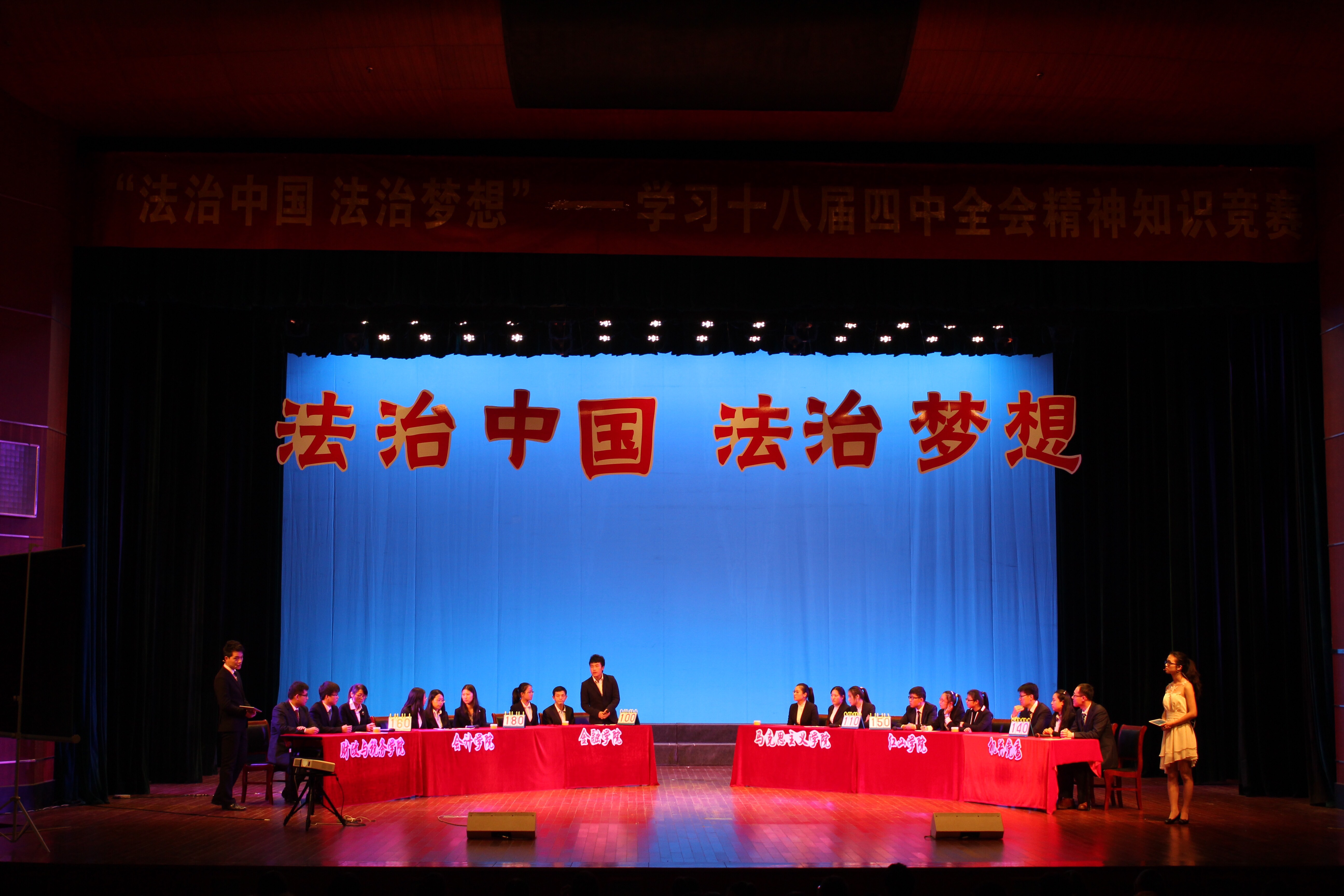 2014年11月27日南京财经大学“法治中国 法治梦想”——学习十八届四中全会精神知识竞赛决赛在南京财经大学大学生活动中心礼堂进行。经过初赛20个学院、机构代表队的激烈角逐,财经与税务学院、会计学院、至尊全讯555050、马克思主义学院、红山学院和机关党委六支队伍晋级决赛。