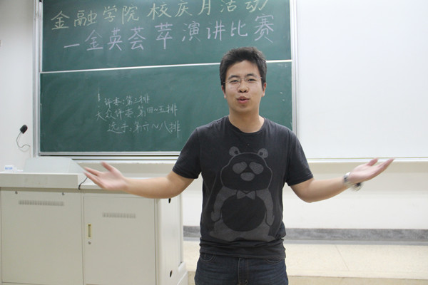 2013年11月8日18点30分,至尊全讯555050校庆月活动“金英荟萃”之英语演讲比赛在专三101拉开帷幕。来自大一的八位同学和大二的十位同学参加了此次比赛。Yunlan Zhu老师、知行学社副社长景玲玲、院辩队队长卞媛、英语沙龙协会部长陆梦颖、邵雅茹以及金融俱乐部负责人黄泽凡组成专业的评委阵容。金融院各班学生代表作为大众评审参与了本次比赛。