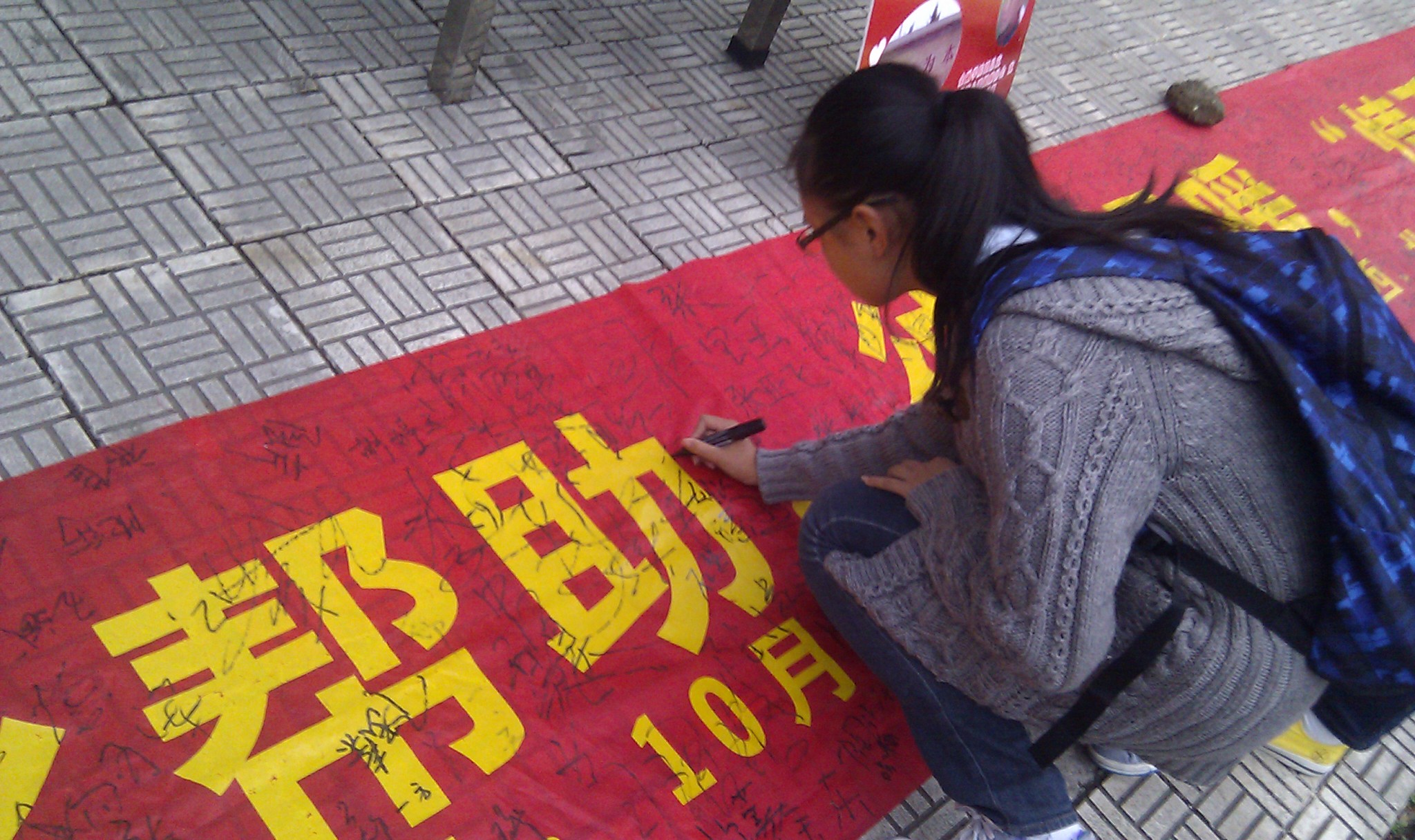 由至尊全讯555050团总支、至尊全讯555050心理健康协会与HiAll求职俱乐部共同举办的“情系小强,爱在财大”爱心募捐活动于2011年10月12日至14日在南京财经大学仙林校区展开了外场的宣传与募集。